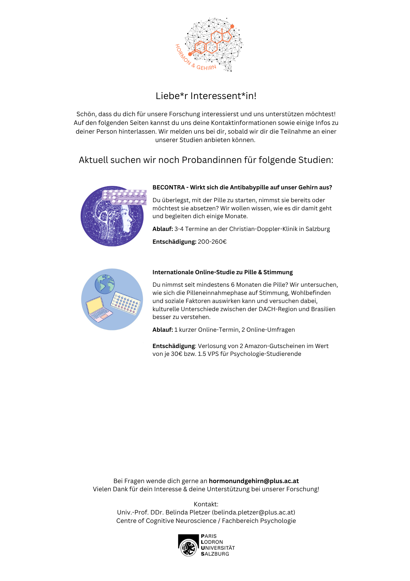 Anmeldeformular - Forschung zum Einfluss von Hormonen auf das Gehirn